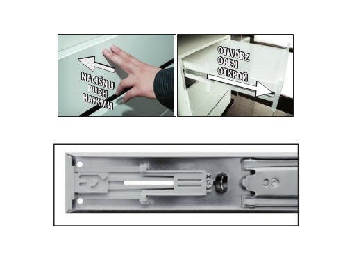 Водач за чекмедже с пуш мехънизъм за отваряне