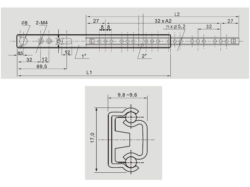 водачът (релсата) е съвместим за стандартните мебели предлагани от Мебелените магазини и маркети