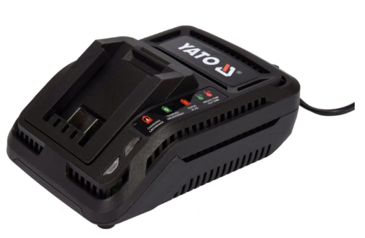 Зарядно устройство за литиево - йонни батерии. Зарядният ток е съобразен с характеристиките на клетките, което удължава живота на батерията. Подходящо за батерии YATO 2 Ah, 3 Ah, 4 Ah, 6 Ah.