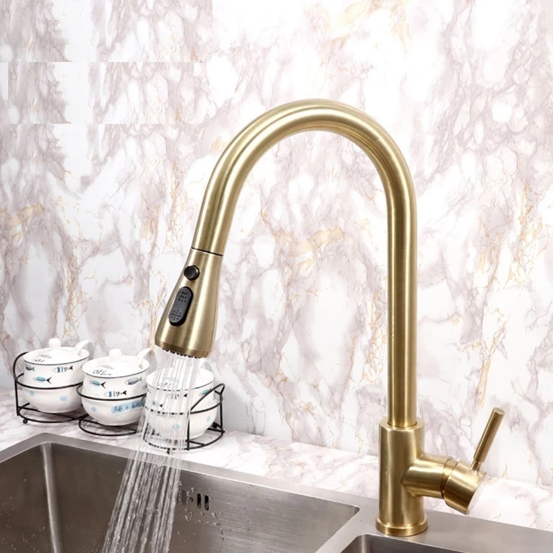 Златист Смесител с изтеглящ душ за кухня в цвят Злато създаващ Лукс във вашата Кухня.